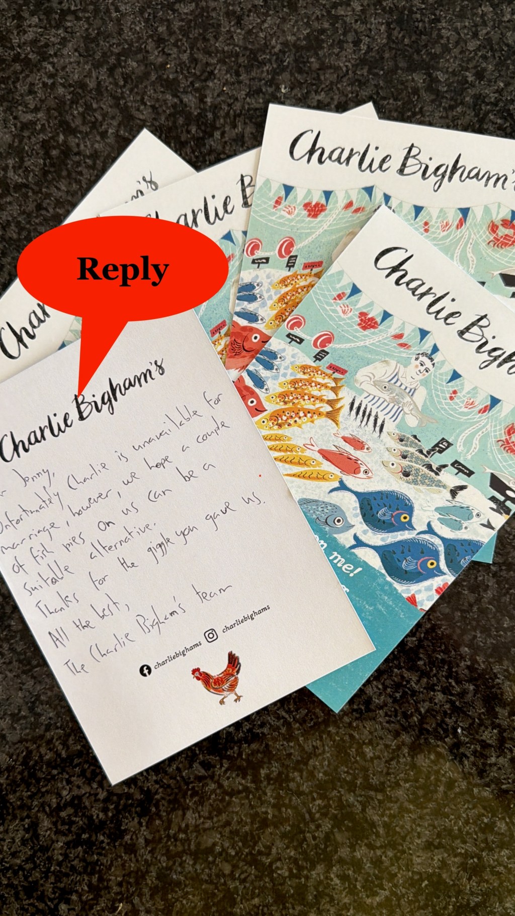 Got a nice reply from Charlie Bigham’s Team when I sent them my Ode to Charlie Bigham.